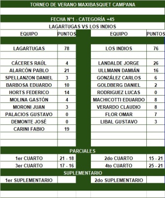 Al reanudarse las acciones Alarcón siguió machacando en la pintura y Lagartugas recuperó la ventaja. Landalde, a la postre máximo goleador del partido, seguía penetrando y chocando todo lo que se cruzaba, para que no se pudieran sacar diferencias. Lagartugas se impuso por la mínima el el parcial (17-16) y llegaron al capítulo decisivo con Los Indios al frente 55-53. Un muy buen parcial de Ullman anotando 10 puntos prácticamente seguidos, posicionaron al Negriblanco arriba por 10 puntos que parecían imposibles de descontar dentro de un contexto tan parejo. Los Anfibios lucían cansado y su juego era errático. Pero salieron a quemar las naves y con 3 bombas seguidas de Alarcón, Carino y Eduardo "la Oveja" Barbosa (10) y una fenomenal corrida de punta a punta (con bandeja incluida) de Gastón Molina (4) pasaron al frente por 1 punto a falta de 60 segundos. En la acción siguiente, Los Indios fallaron y, presos de la desesperación, le cometieron infracción a Juan Moroni (3), que desde la línea de libres adelantó a los suyos por 2 (78-76). Los de moreno tuvieron la última para empatar y forzar una prórroga, pero Claudio "el Gallo" Verardo fallo bajo el aro y fue victoria de Lagartugas.