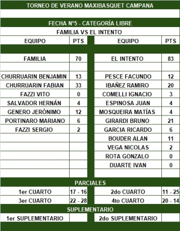 En los primero minutos del complemento Girardi salió inspirado, y con 3 bombas consecutivas el Intento tomó una ventaja que parecía decisiva. Con diferencia de 20, Familia se apoyaba en la experiencia de Churruarín pero no fue suficiente. El último cuarto fue para cumplir y El Intento cosechó la victoria que lo posiciona en primer lugar. En semis esperará al vencedor del repechaje entre Átomo Team y Familia.