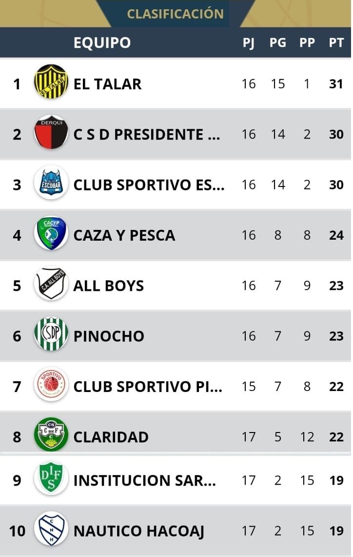 Si bien restan varios partidos para definir las posiciones, hay dos grupos de equipos que pugnan por los puestos 1 y 4. Por el tope de la tabla compiten El Talar, Derqui y Sportivo Escobar. Descartando que ganen sus juegos ante otros rivales, el ordenamiento de estos equipos en los puesto 1 al depende de lo que suceda en el juego entre El Talar y Escobar. El segundo tiene que ganar para forzar un triple empate en la punta. En el caso de la definición del puesto 4, Caza y Pesca es el que más chances tiene de quedarse con esa colocación, si se da la lógica: el Tiburón debe visitar a Hacoaj y cierra su fase regular como local ante Pinocho. Este último superó por 20 puntos a los de Don Torcuato, en una noche para el olvido, y tiene chances de escalar en la tabla, aunque todavía no jugó contra Presidente Derqui, que debería derrotarlo. Los otros 2 que mantienen aspiraciones son All Boys y Sportivo Pilar, aunque uno de ellos será verdugo del otro, ya que deberán jugar entre sí en Floresta. Además Sportivo tiene un juego pendiente ante Derqui, en uno de los clásicos de Pilar, y el Albo tiene que visitar a Escobar. Por eso Caza y Pesca cuenta con mayores posibilidades, ya que aún cediendo un juego, podría quedarse con ansiado 4.